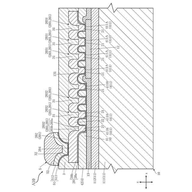 本開示において、「ある物Aがある物Bに形成されている」および「ある物Aがある物B(の)上に形成されている」とは、特段の断りのない限り、「ある物Aがある物Bに直接形成されていること」、および、「ある物Aとある物Bとの間に他の物を介在させつつ、ある物Aがある物Bに形成されていること」を含む。同様に、「ある物Aがある物Bに配置されている」および「ある物Aがある物B(の)上に配置されている」とは、特段の断りのない限り、「ある物Aがある物Bに直接配置されていること」、および、「ある物Aとある物Bとの間に他の物を介在させつつ、ある物Aがある物Bに配置されていること」を含む。同様に、「ある物Aがある物B(の)上に位置している」とは、特段の断りのない限り、「ある物Aがある物Bに接して、ある物Aがある物B(の)上に位置していること」、および、「ある物Aとある物Bとの間に他の物が介在しつつ、ある物Aがある物B(の)上に位置していること」を含む。また、「ある方向に見てある物Aがある物Bに重なる」とは、特段の断りのない限り、「ある物Aがある物Bのすべてに重なること」、および、「ある物Aがある物Bの一部に重なること」を含む。また、「ある物A(の材料)がある材料Cを含む」とは、「ある物A(の材料)がある材料Cからなる場合」、および、「ある物A(の材料)の主成分がある材料Cである場合」を含む。また、「ある面Aがある方向B(の一方側または他方側)を向く」とは、特段の断りのない限り、面Aの方向Bに対する角度が90°である場合に限定されず、面Aが方向Bに対して傾いている場合を含む。また、「ある面Aがある面Bに直交する」とは、特段の断りのない限り、面Aの面Bに対する角度が90°である場合に限定されず、面Aが面Bに対して傾いている場合を含む。