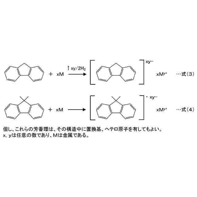還元状態のフルオレン系化合物と、前記キャリアイオンと同種の金属イオンと、回復剤溶媒と、