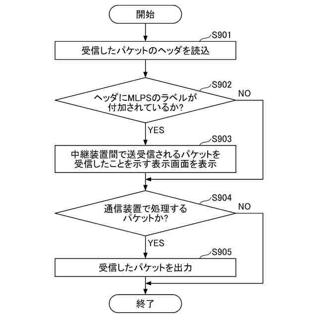 前記ネットワークから受信したパケットが、中継装置間で送受信されるパケットであるかを判定する処理と、
