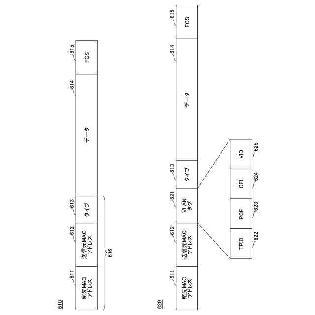 第1の実施形態に係るVLANタグ付加されたパケットの一例を示す図である。
