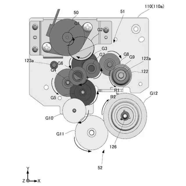 前記固定機構は、前記駆動歯車と直接噛み合う歯車と隣り合う歯車を停止させる、