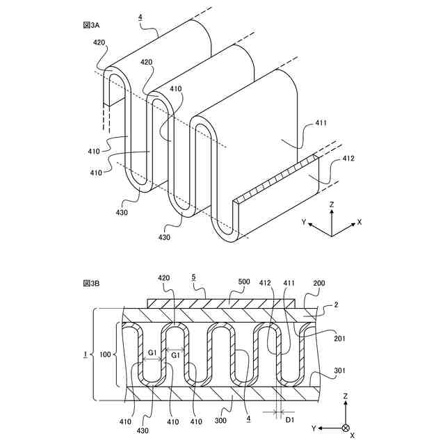 コルゲートフィンの構成例を説明する斜視図(図3A)及び断面図(図3B)である。