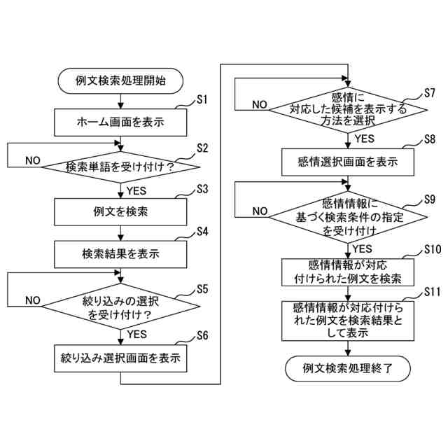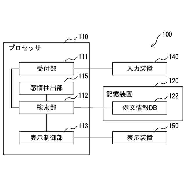 しかしながら、従来の技術においては、例文を検索することができるものの、検索結果の例文が多い場合には、ユーザが目的とする例文が見つからない場合がある。以上のような実情を踏まえ、本発明の一側面に係る目的は、感情情報を利用することにより複数の例文から目的とする例文を効率的に検索する技術を提供することである。
