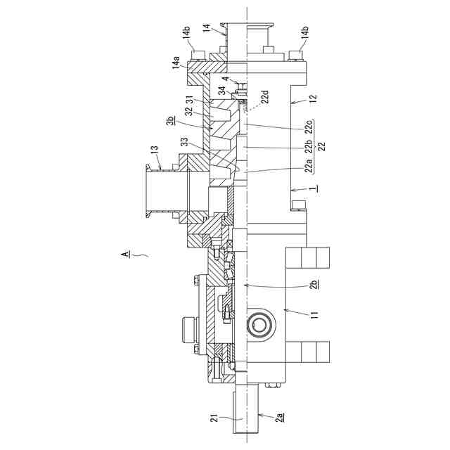 さらに、スパナ等の工具を用いて締め込んでいくと、抜きボルトにかかる回転軸からの反力によって、スクリューが抜け方向にスライドして、容易に取り外すことができる。