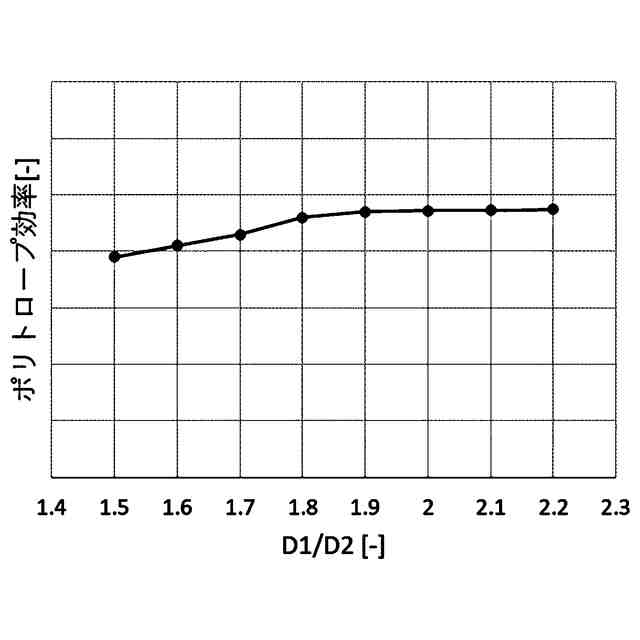 図3は、インペラの外径D2に対する静止流路の外径D1の比とポリトロープ効率との関係を示す図表である。
