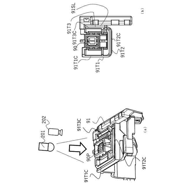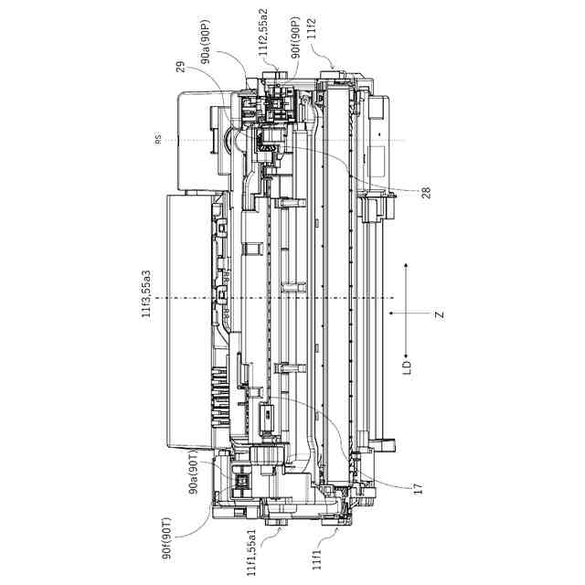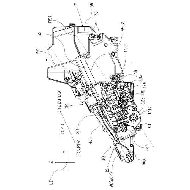 取り外し方向に見たプロセスカートリッジとトナーカートリッジの図