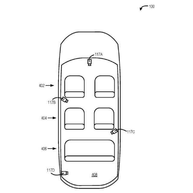 図4は、本開示の一部の実装による、AIを使用して車両内の乗客を検出する例示的な車両のトップダウン切り取り図を示す。