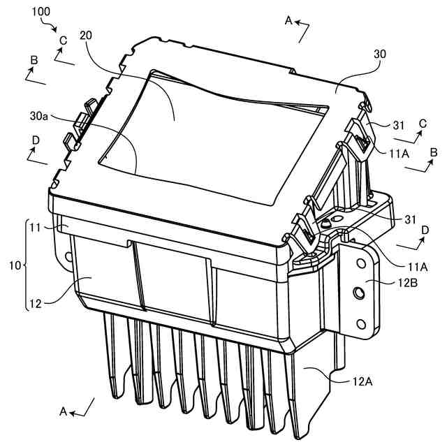 図1から図15を参照して、実施形態について説明する。図1は、実施形態に係る画像表示装置を含む車両用表示装置を示す模式図、図2は、実施形態に係る画像表示装置を示す斜視図、図3は、実施形態に係る画像表示装置を示す分解斜視図、図4は、実施形態に係る画像表示装置の筐体を示す上面図、図5は、実施形態に係る画像表示装置を示す上面図、図6は、実施形態に係る画像表示装置を示す上面図、図7は、実施形態に係る画像表示装置を示す上面図、図8は、実施形態に係る画像表示装置を示す斜視図、図9は、実施形態に係る画像表示装置を示す断面図、図10は、実施形態に係る画像表示装置を示す拡大断面図、図11は、実施形態に係る画像表示装置を示す拡大断面図、図12は、実施形態に係る画像表示装置を示す断面図、図13は、実施形態に係る画像表示装置を示す拡大断面図、図14は、実施形態に係る画像表示装置を示す拡大断面図、図15は、実施形態に係る画像表示装置を示す拡大断面図である。