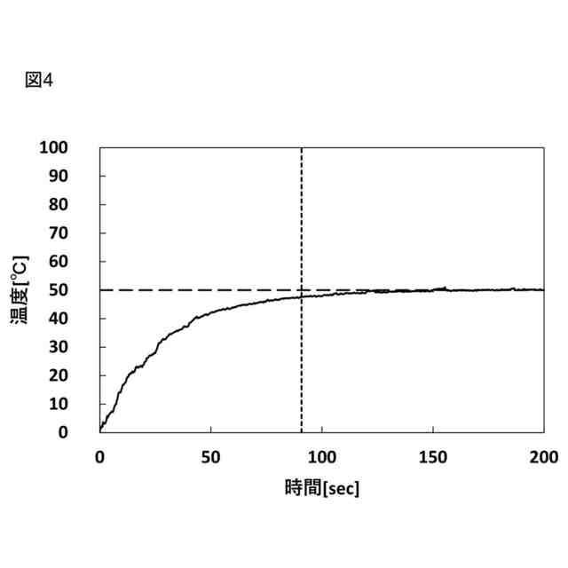 モータ30を停止させる第3期間P3を挟んで回転速度を切り替えてモータ30を駆動させたときの、2種の材料の混合のシミュレーション結果を示す図であり、本図は、100℃の温水および0℃の冷水の混合の時間的変化を示す。