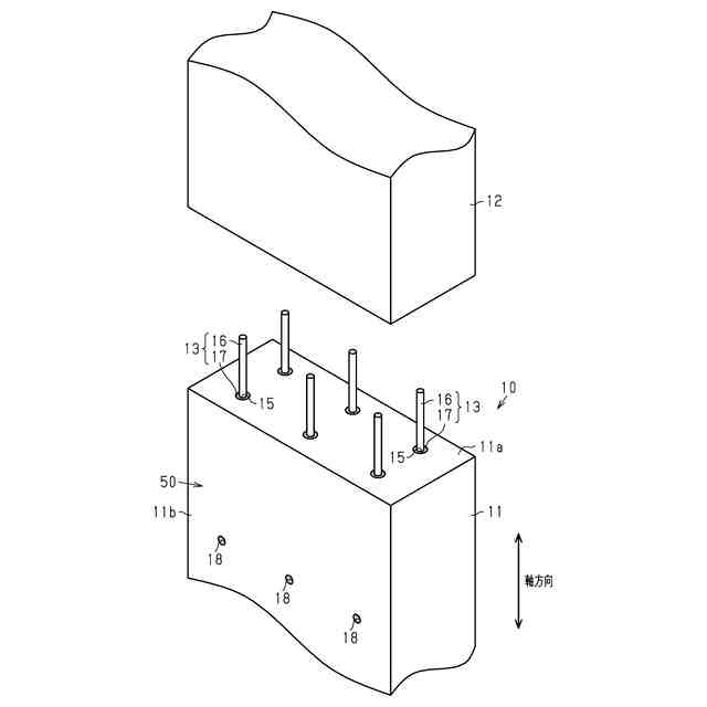 図1に示すように、接続構造10は、木質軸材11と他部材12とを軸方向に軸接続材13で接続する。木質軸材11は、例えば柱や梁など、建築物を構成する部材の一部である。他部材12は、例えば柱や梁、仕口など、建築物を構成する部材の一部である。他部材12は、木質材であってもよいし、プレキャスト材であってもよい。