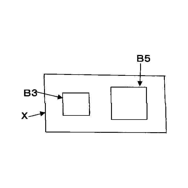 図2は長方形のX線不透過性物質Xに2箇所の大きさの異なる正方形の切り取り部B3及びB5で構成される。