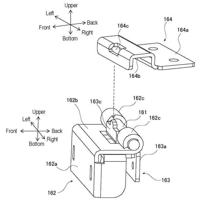 上ヒンジを示す斜視図