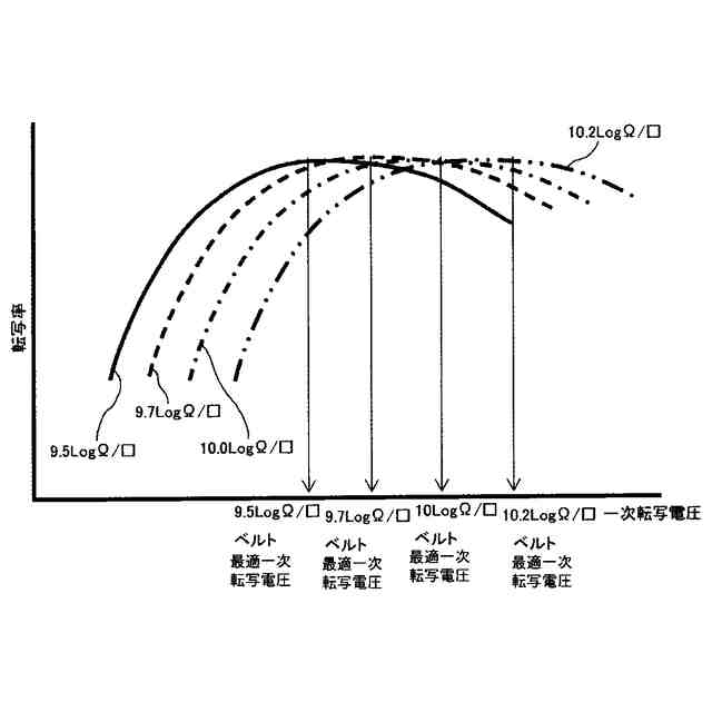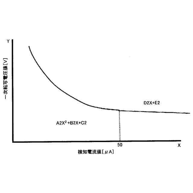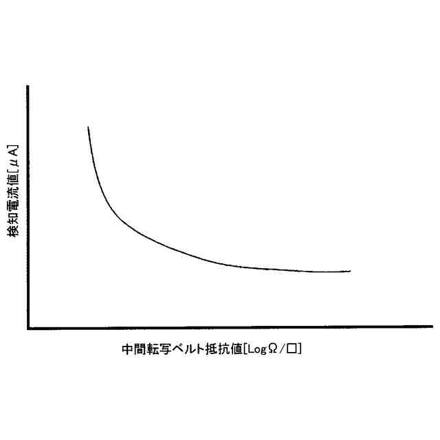 中間転写ベルト表面抵抗値と検知電流の関係を示すグラフ。