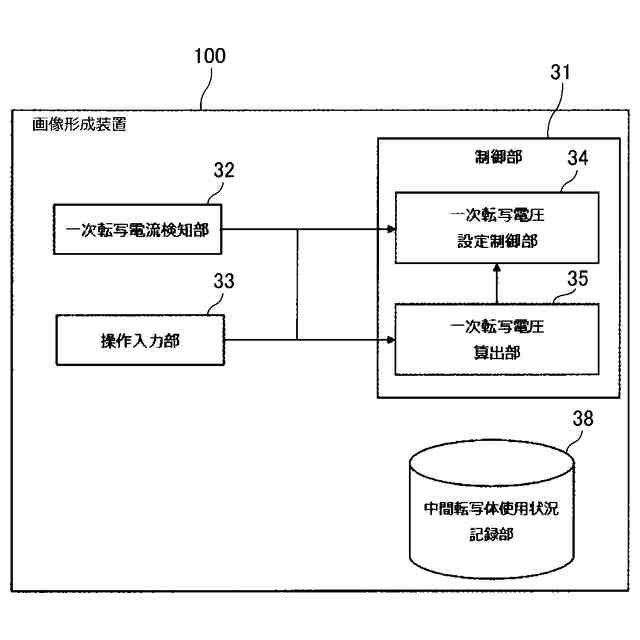 【解決手段】画像形成装置は、一次転写電圧が印加され、像担持体たる感光体のトナー像を一次転写部で中間転写体たる中間転写ベルトに一次転写する一次転写部材たる一次転写ローラと、一次転写電流検知部によって検知した一次転写ローラに流れる電流値に基づいて、一次転写電圧を設定する一次転写電圧設定制御を行う制御部たるエンジン制御部と、ユーザーの操作入力を受け付ける操作入力部たる操作パネルとを備えている。エンジン制御部は、操作パネルを通じて中間転写ベルト交換情報が入力されたタイミング、および、中間転写ベルトが交換された後の最初の画像形成後のタイミングで一次転写電圧設定制御を行う。