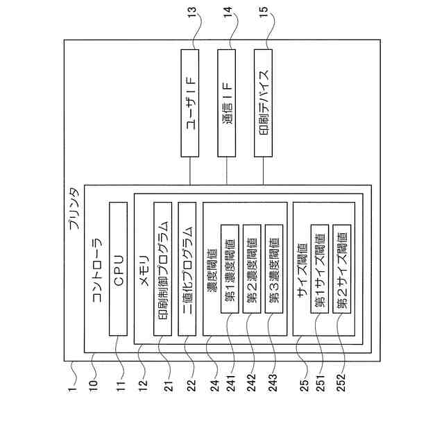 本明細書に開示される技術分野は、多値で構成された画像を二階調に変換して印刷することが可能なプリンタおよびプログラムに関する。