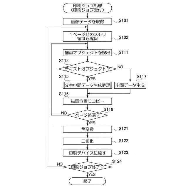 印刷ジョブ処理の手順を示すフローチャートである。