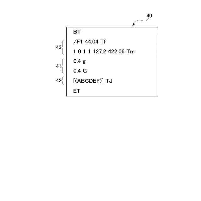 PDF形式のテキスト描画コマンドの例を示す説明図である。