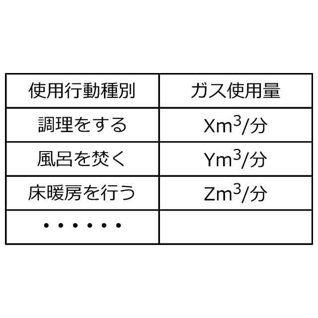 例えばスマートメータと呼ばれる自動使用量算出機を用いることで、ガスの使用量を正確に算出することが可能である。しかし、このようなスマートメータを各戸に設置するためには、相当のコストと時間を要する。