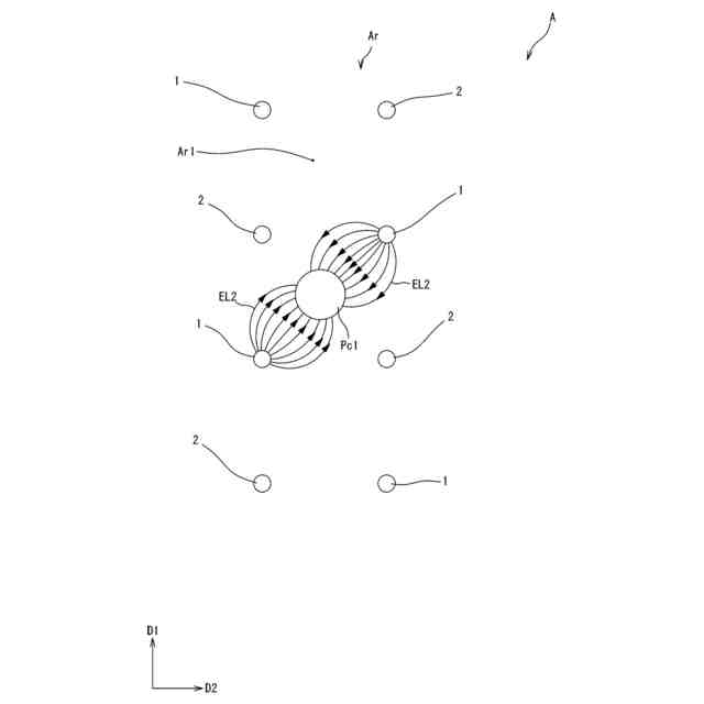 正極及び負極で発生する電気力を示す電気力線ELを示す図である。