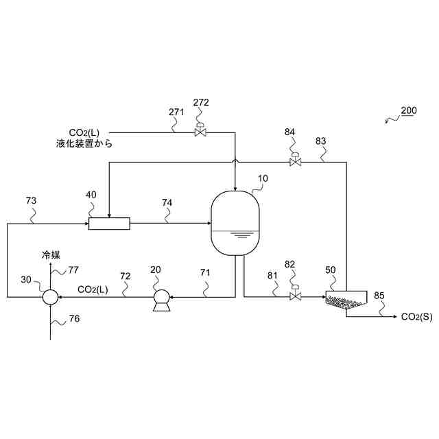 が蒸発する際に蒸発潜熱を奪うことで残りの液体を冷却し、ドライアイスを製造する。このため、液体CO