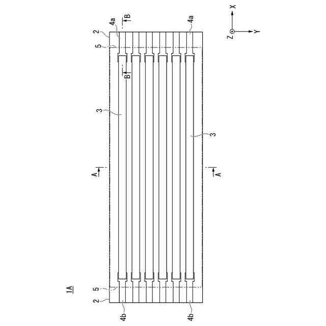 【解決手段】屈曲自在又は伸縮自在な樹脂基板2と、樹脂基板2の少なくとも一方の面側に並んで設けられた伸縮自在な複数の配線層3と、樹脂基板2の少なくとも一方の面側の一端側に並んで設けられた複数の第1の電極層4aと、樹脂基板2の少なくとも一方の面側の他端側に並んで設けられた複数の第2の電極層4bとを備え、配線層3は、液体金属に金属粒子を分散させた流動性金属材料により形成されており、第1の電極層4aは、配線層3の一端側と電気的に接続され、第2の電極層4bは、配線層3の他端側と電気的に接続されている。