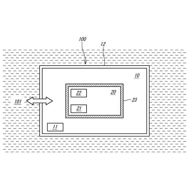 水中構造体100は、例えば、水中に建設された水中建築物や水中を航行する水中ビークルである。水中構造体100の周囲を満たす水101は、海水であってもよく淡水であってもよい。なお、本開示では、水中構造体100の周囲を満たす水101を「屋外の水」と称する。