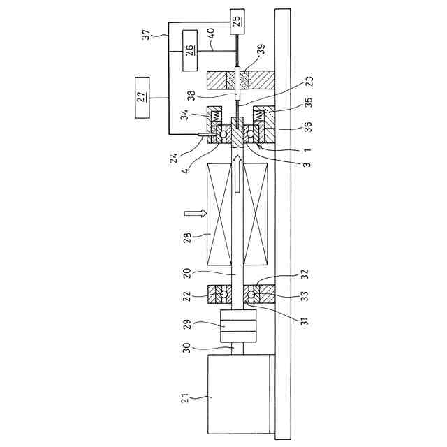 ここで、インバータのスイッチング周波数が高くなると、電動モータのステータの巻線からの漏れ電流により、電動モータのロータを取り巻く高周波磁束が発生し、ロータの両端に電位差が生じる。その結果、ロータを支持する転がり軸受の内輪と外輪の間に電位差が生じる場合がある。
