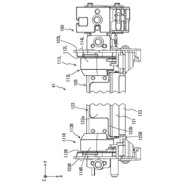 図3に示す定着ベルトユニットを、その長手方向(矢印Y方向)の中心部で切断した断面等を左側から見た要部断面図である。