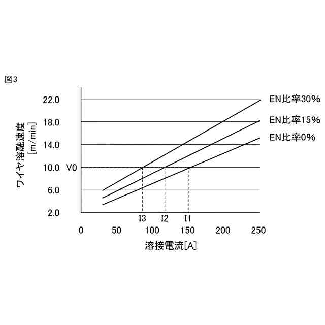 EN比率ごとの溶接電流とワイヤ溶融速度との関係の一例を説明するための図である。