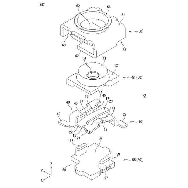 図6に示したスイッチ付き同軸コネクタを底面側から見た分解斜視図である。