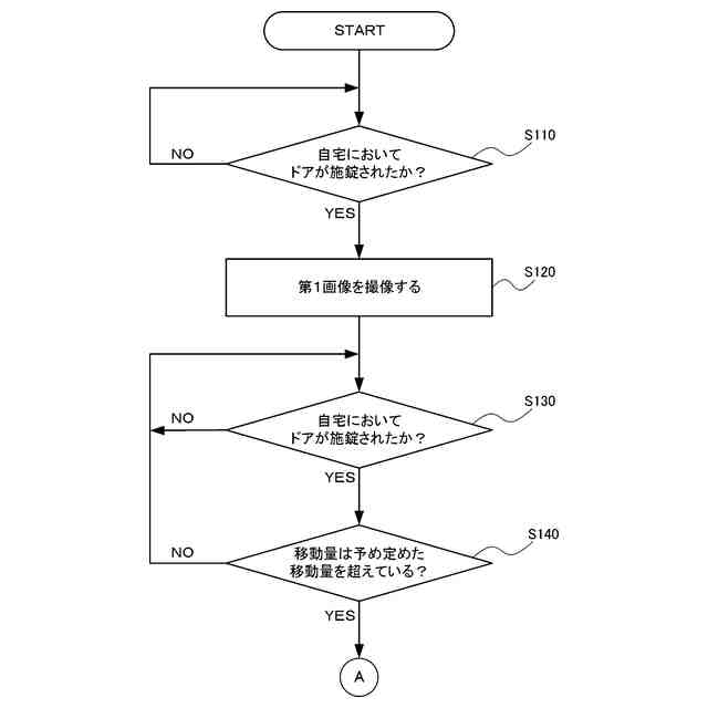 前記車両の前記位置情報が前記自宅に位置し、且つ前記ドアが施錠された場合に、前記カメラによって撮像された第1画像と、