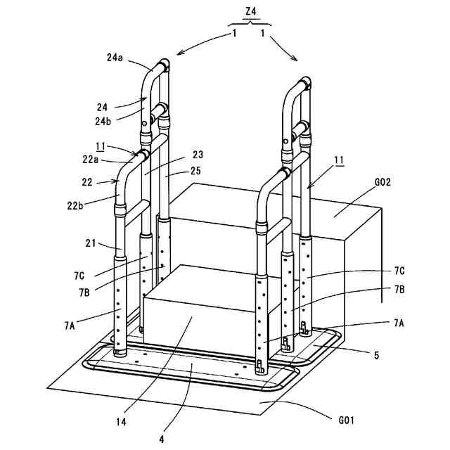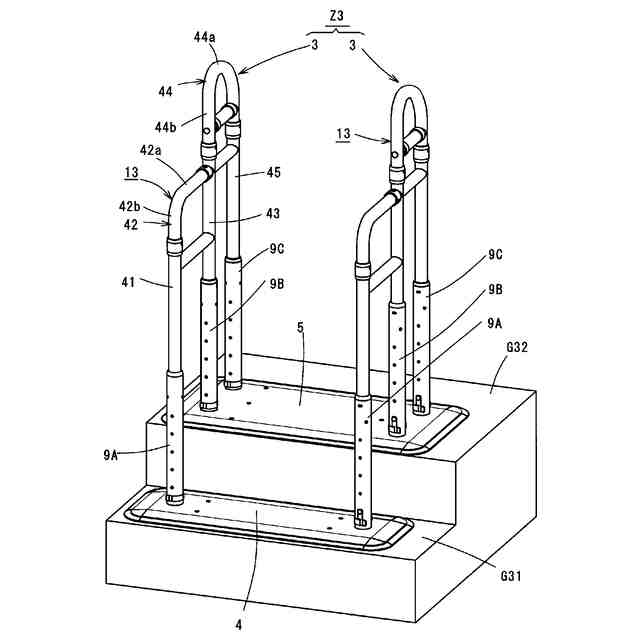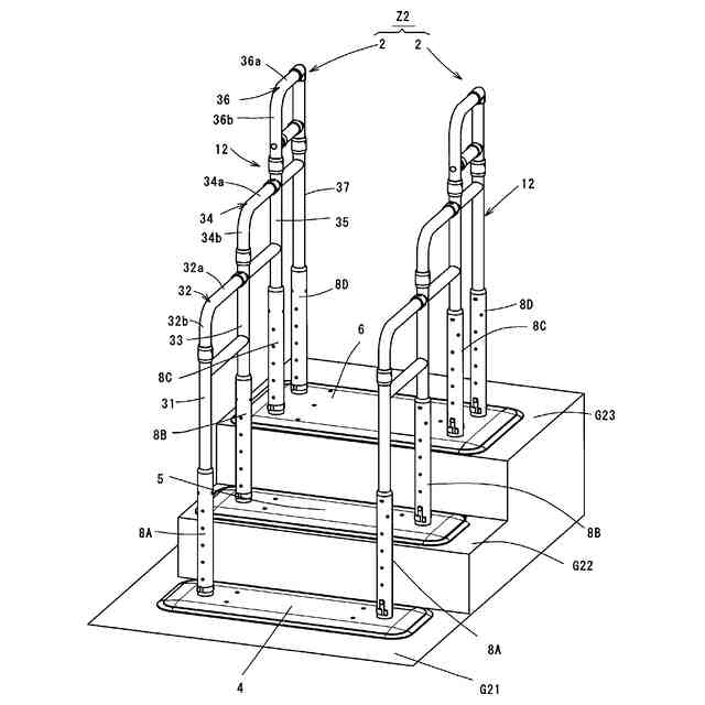 段差部分に設置される手摺り装置としては、例えば、特許文献1~特許文献3に示すものが知られている。