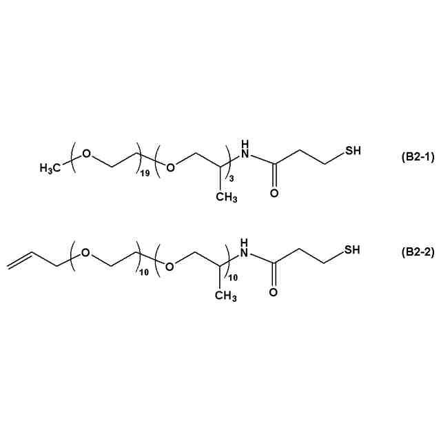 (B2)前記(B1)成分の表面に配位しているチオールリガンドであって、酸化エチレン、及び酸化プロピレンから選ばれる少なくとも1種の繰り返し単位を含むポリマー構造を有するチオールリガンド、