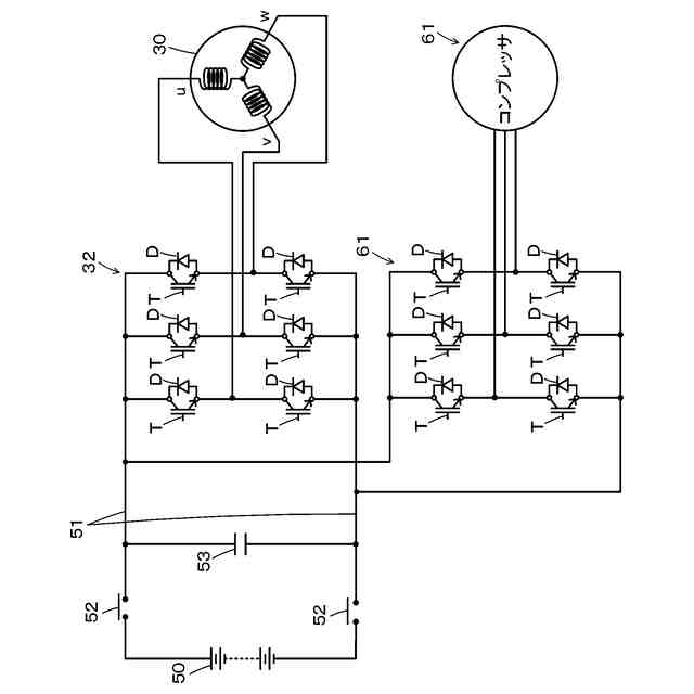 モータ含む高電圧系の概略構成図である。