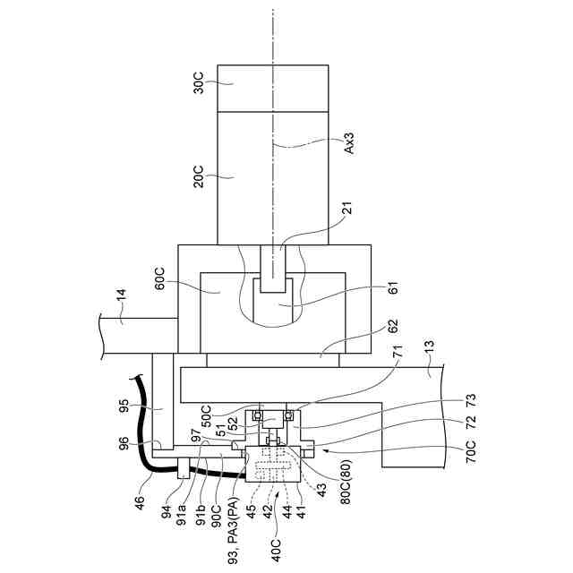 回転センサの周辺構造の更に他の変形例を示す模式図である。