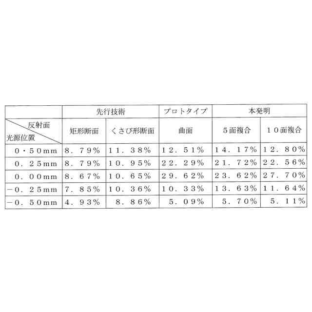 前記入光面の所定位置から入光し、前記反射面の前記出光面に対する傾斜が異なる複数の位置から反射された光が、
