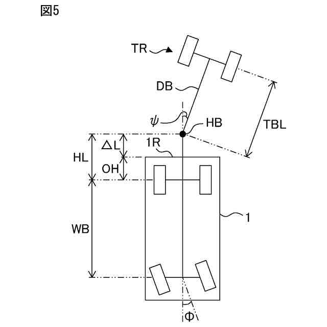 (3)(1)又は(2)のヒッチ角推定装置では、前記車両と前記トレーラと前記牽引バーとを示す運動モデルには、前記ワールド座標系における前記トレーラのヒッチ角と、前記ワールド座標系における前記車両の舵角と、前記ワールド座標系における前記車両の速度と、前記ワールド座標系における前記車両のホイールベースと、前記ワールド座標系における前記車両のヒッチ長と、前記ワールド座標系におけるトレーラビーム長とが含まれてもよい。