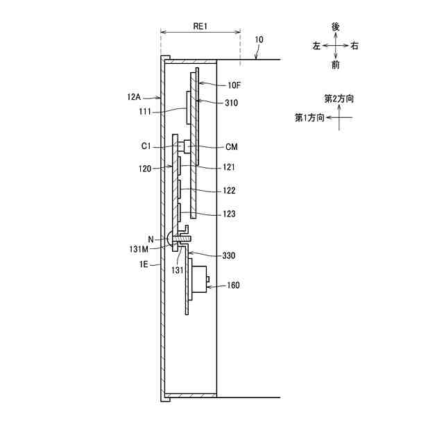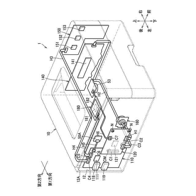 また、サブ基板は、少なくとも一部が第1方向においてメイン基板と向かい合う構成としてもよい。そして、第1コネクタは、メイン基板に対し、第1方向に接続されていてもよい。