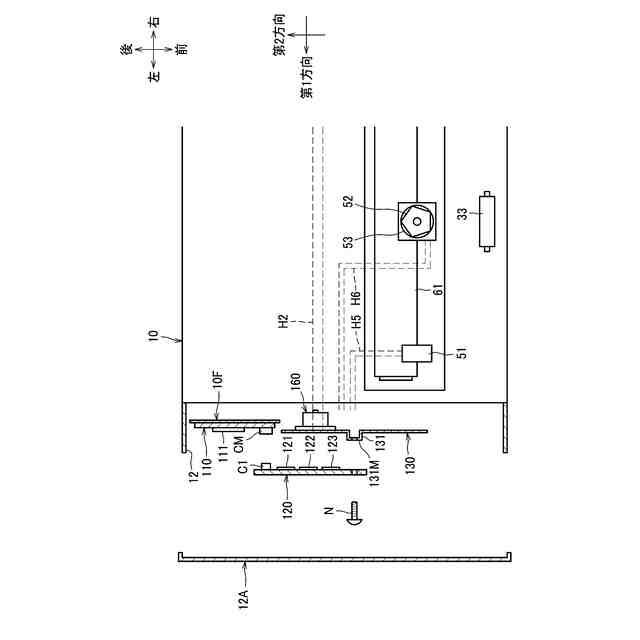 本体筐体は、第1方向において第1領域に近い第1端と、第1方向において第1端よりも第1領域から離れた第2端とを有する。
