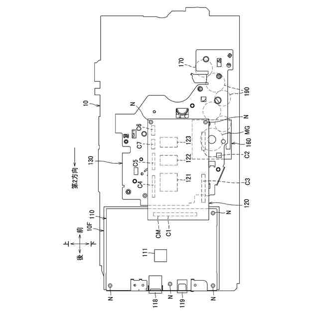 サブ基板と第1端との距離は、メイン基板と第1端との距離よりも小さく、かつ、板金と第1端との距離よりも小さい。