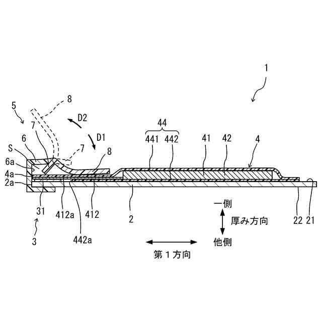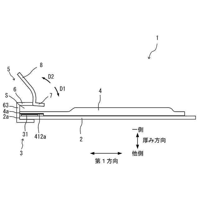 そこで、基板に対してシート状電池を容易に取り付け可能であり、前記シート状電池を取り付けた状態で、前記基板と前記シート状電池との接続状態が変化しにくい構成が求められている。