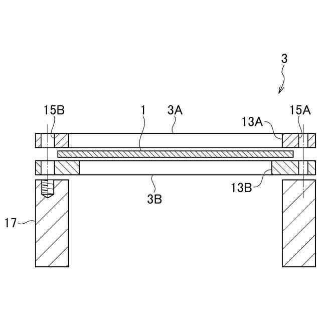 図5は、治具に挟まれたブランクの断面立面図である。