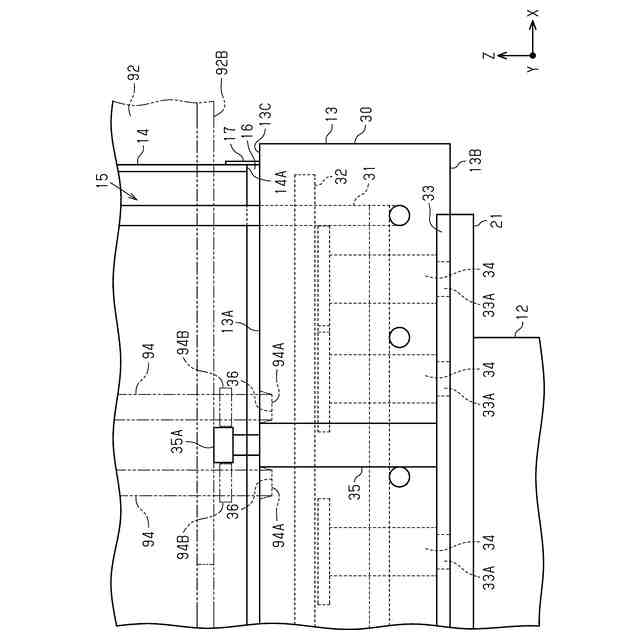 初めに、図1から図3を参照して、本発明の免震構造10について説明する。免震構造10は、建物と地盤との間において仕口90の免震層として構成されている。仕口90は、鉄筋コンクリート柱91と鉄骨梁92とで構成されている。免震構造10は、下部基礎部材11と、下部基礎部材11上の免震装置12と、免震装置12上の上部基礎部材13とを備えている。
