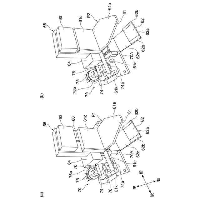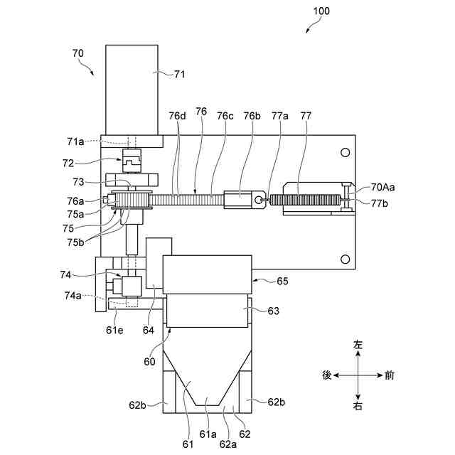 [1]の走行車システムでは、モータが駆動状態であるとき、巻き付け部材が巻き取り部に巻き取られる。そして、モータが駆動状態でないとき、巻き付け部材の他端が巻き取り部から遠ざかる方向に付勢部材によって付勢されることで巻き付け部材が巻き取り部から巻き出される。これにより、回転軸を介して偏心カムが回転させられ、測定プレートが退避位置に移動する。その結果、モータが駆動状態でないとき、簡易な構成で測定プレートを退避位置に位置させることができる。