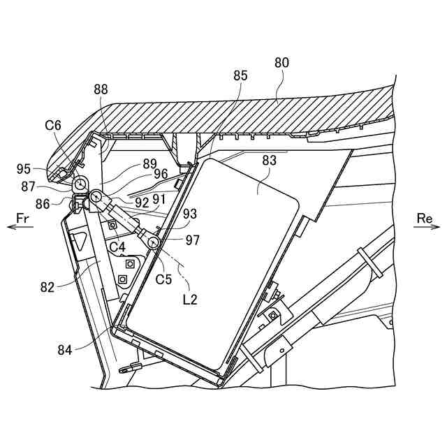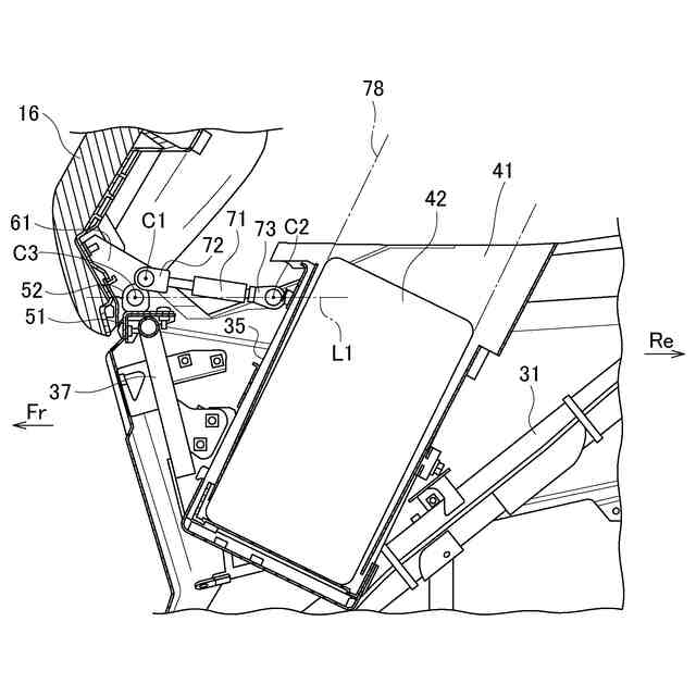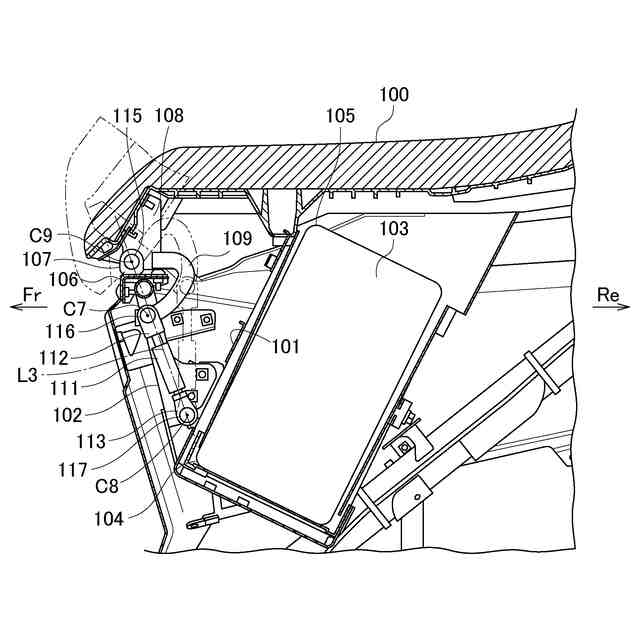 前記バッテリの前面上端が前面下端よりも後方になるように前記バッテリが傾けられ、