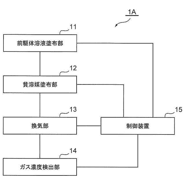 【解決手段】ペロブスカイト型太陽電池の製造装置1は、ペロブスカイト化合物を含有する光電変換層を有するペロブスカイト型太陽電池を製造する装置であって、ペロブスカイト化合物を溶質として含む塗布面に対して前駆体溶液を塗布する前駆体溶液塗布部11と、前駆体溶液が塗布された塗布面に対して、前記前駆体溶液の溶媒よりも前記ペロブスカイト化合物の溶解度が小さい貧溶媒を塗布する貧溶媒塗布部12と、塗布面近傍を換気する換気部13とを備える。