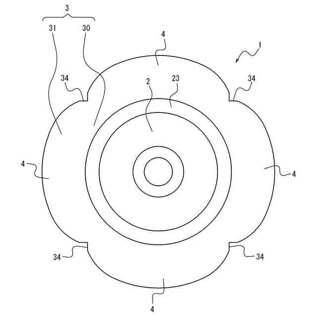 その外周部が、前記支持部の周方向に沿って隣接する複数の花弁状部に分割されており、
